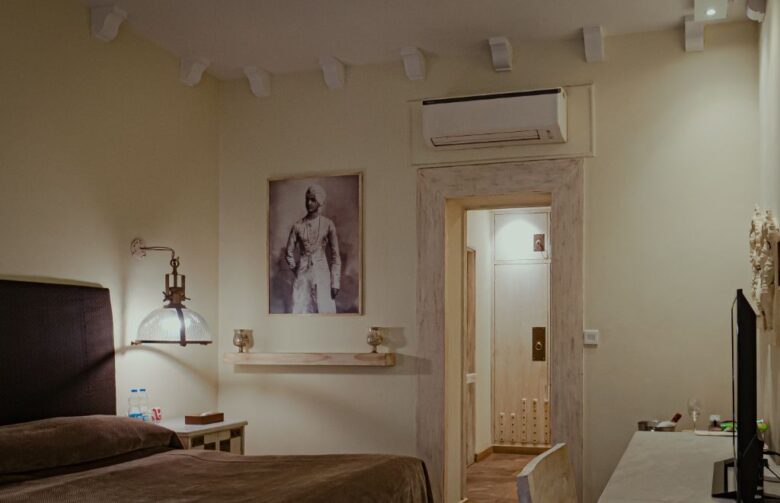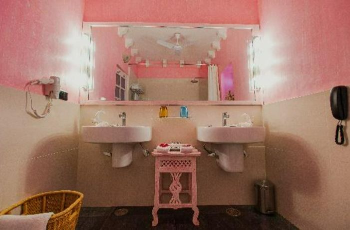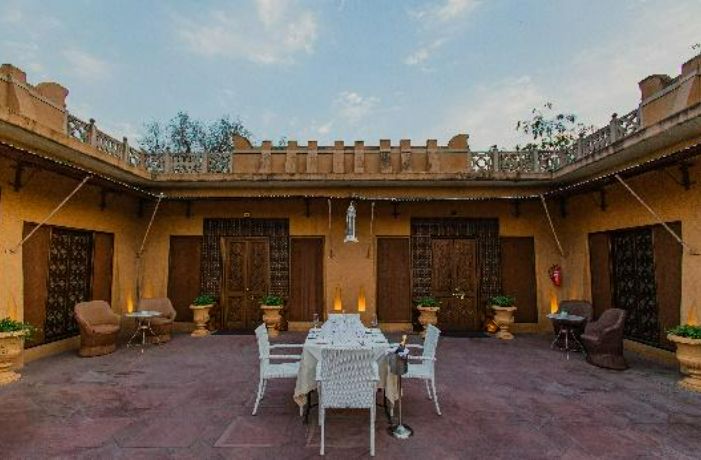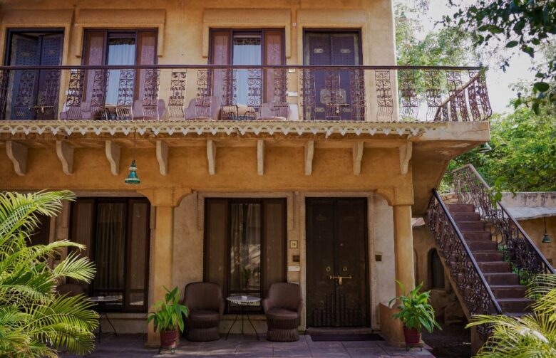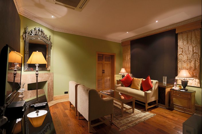 The edifice, made of evocative red sandstone, a harmony of 20th century Anglo-Indian architecture extends into a secluded patio, and a stunning private courtyard. The décor of the twin suites is opulent and equipped with state-of-the-art conveniences.