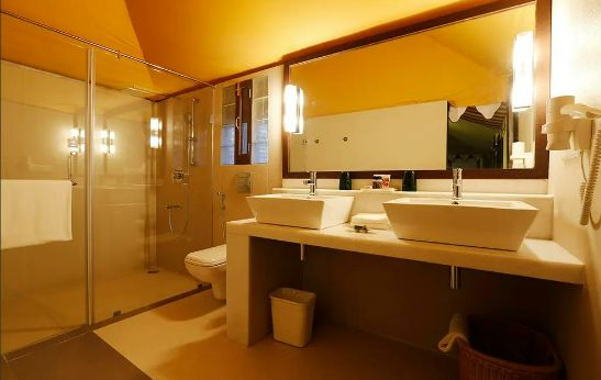 Inspired by the simplistic rural lifestyle in Rajasthan, the façade illustrates rustic hamlets, whilst the walls hark back to Rajputana’s battlefield legacy in the timeless deserts. The décor contains antique military armaments, hand-crafted horse saddle displays, and artwork of battlefield victory and royalty adorn the walls. Each suite has an en-suite bathroom equipped with a stone bathtub and shower, and a private walled balcony.